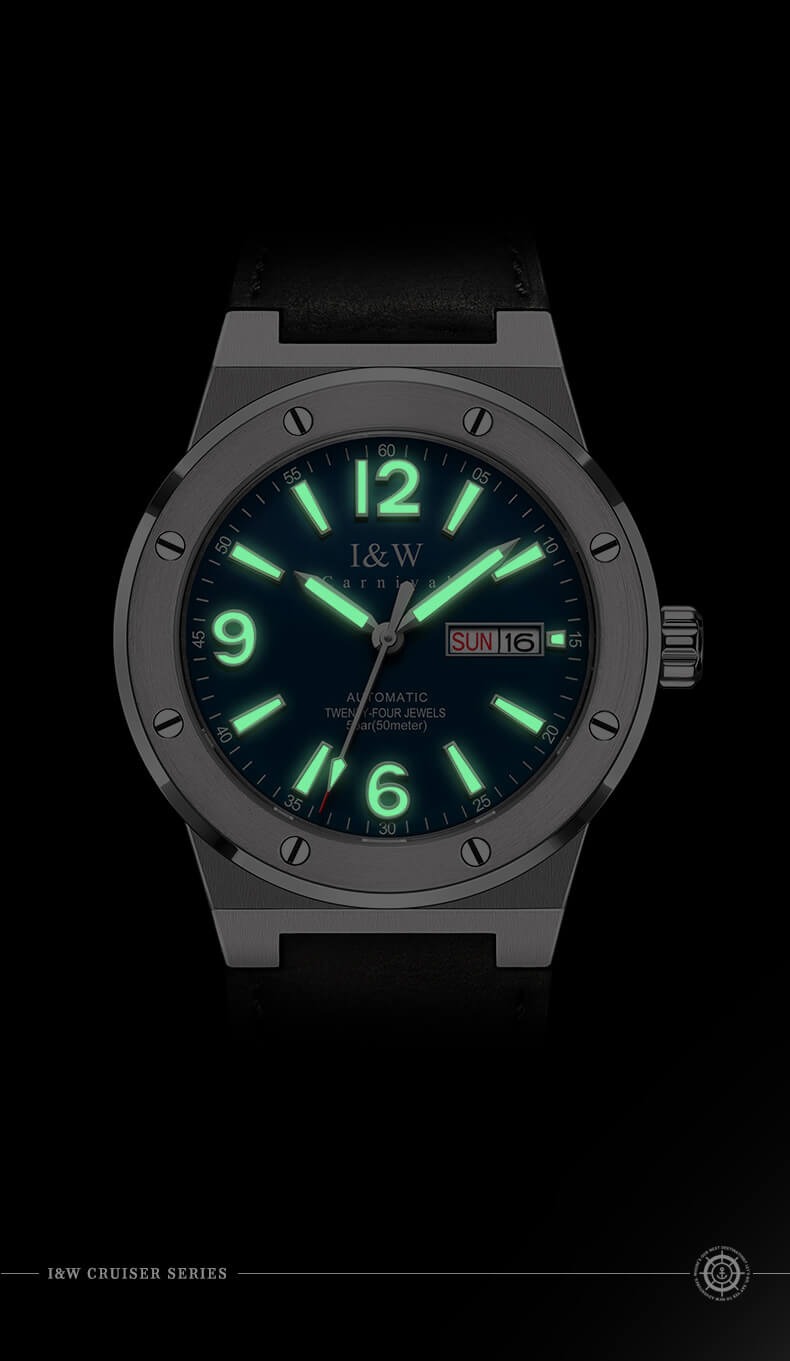 Trên kim chỉ giờ và phút được trang bị lớp dạ quang, phát sáng trong môi trường điều kiện ánh sáng không cho phép, góp phần làm chủ nhân sản phẩm trở nên nổi bật.