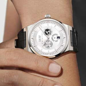 Gợi ý hoàn hảo dành cho bạn chính là đồng hồ mặt trắng IW787G với thiết kế lộ cơ mặt sau sống động, bộ máy Automatic Nhật Bản chất lượng, dây đeo bằng da cao cấp và kính sapphire chống trầy xước.