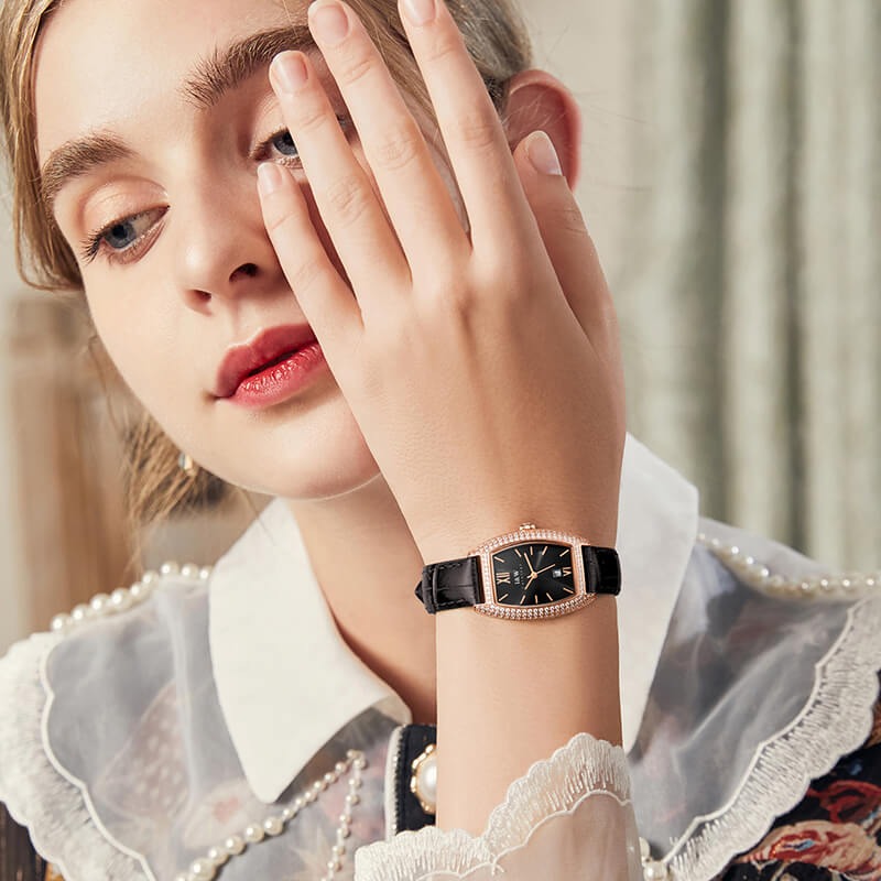 Sắc đen không chỉ phản ánh gu thẩm mỹ nhẹ nhàng mà còn mang đến cảm giác thanh bình và ấm áp, giúp tôn vinh nét đẹp tự nhiên nhất của Nàng,tạo hiệu ứng thị giác nịnh mắt, giúp nàng che khuyết điểm tốt mà dễ dàng mix&match cùng items khác. Với những ngày không biết đeo phụ kiện gì, nàng chỉ cần 1 chiếc đồng hồ xinh mix cùng 1 bộ váy đơn giản cũng đủ giúp nàng nổi bật rồi đó!