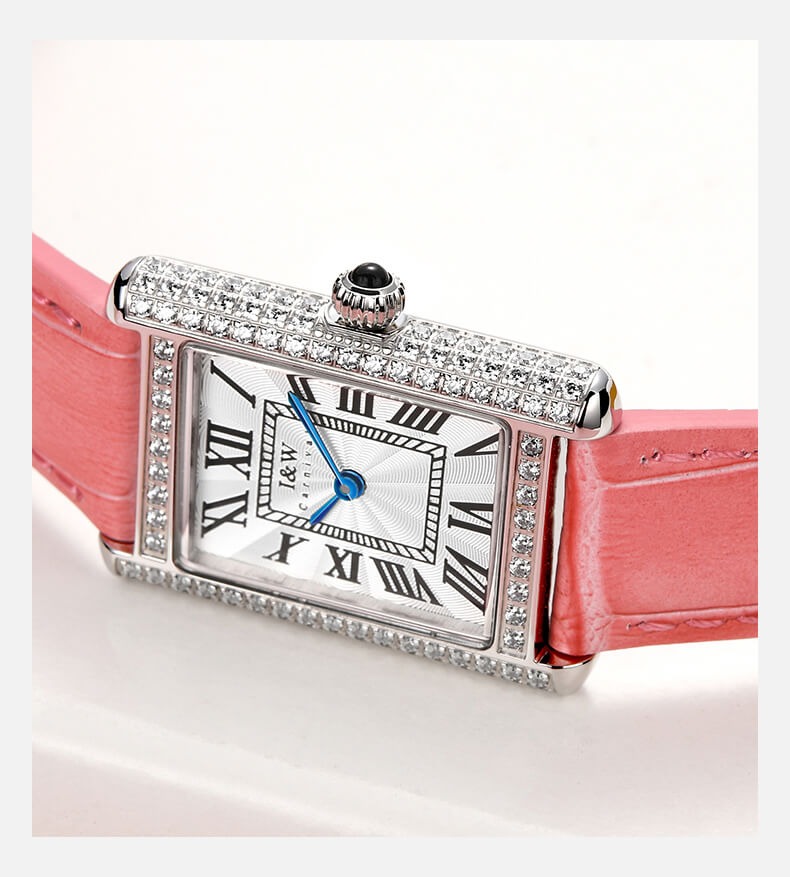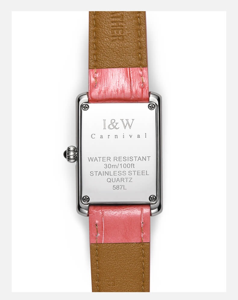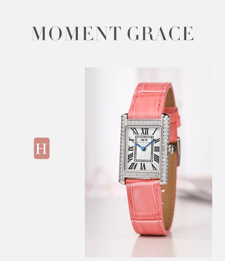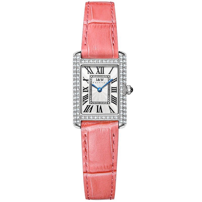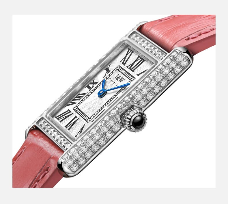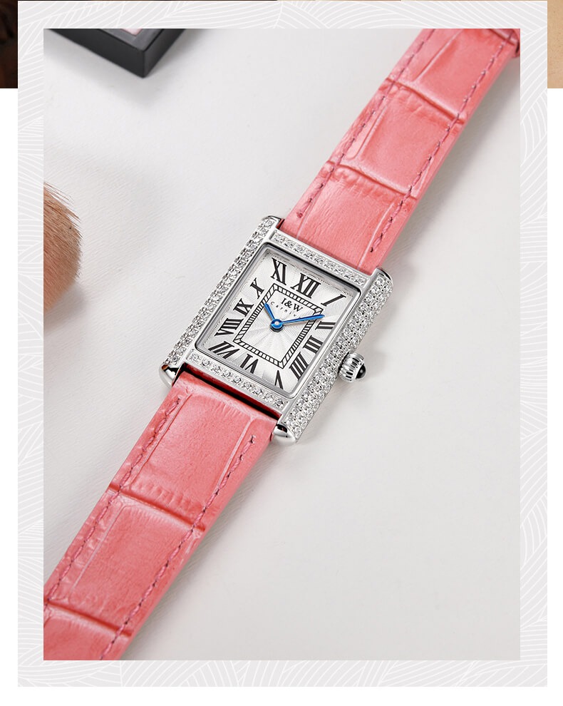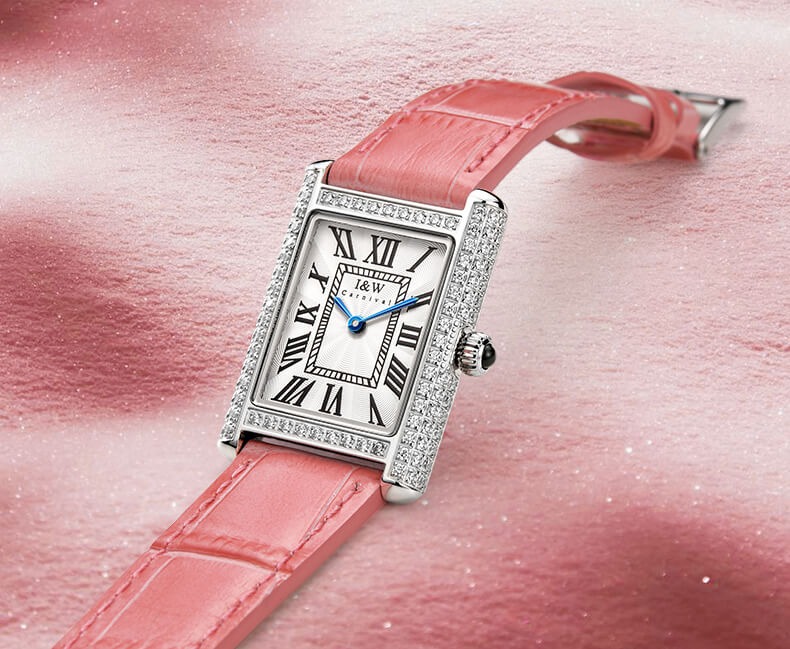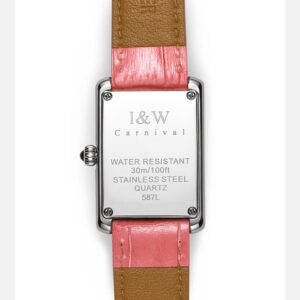 Với những quý cô thanh lịch, IW CARNIVAL IW587L là một lựa chọn hoàn hảo. Mẫu thiết kế sở hữu mặt số dập vân , cọc số La Mã và kim Sword kết hợp cùng lớp vỏ vuông đính đá toàn bộ vỏ ,kích thước 34×22 mm được chế tác tinh xảo để tạo độ cong vừa vặn ôm sát cổ tay .