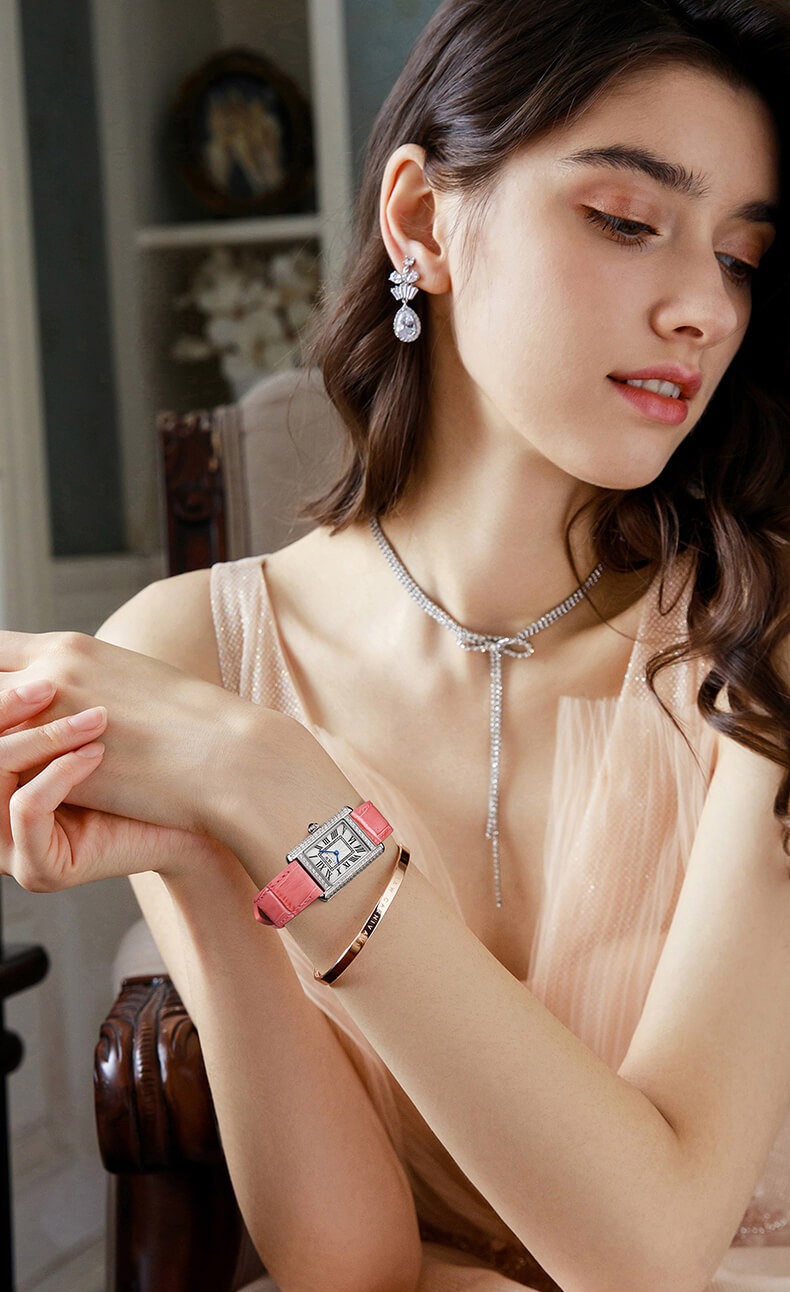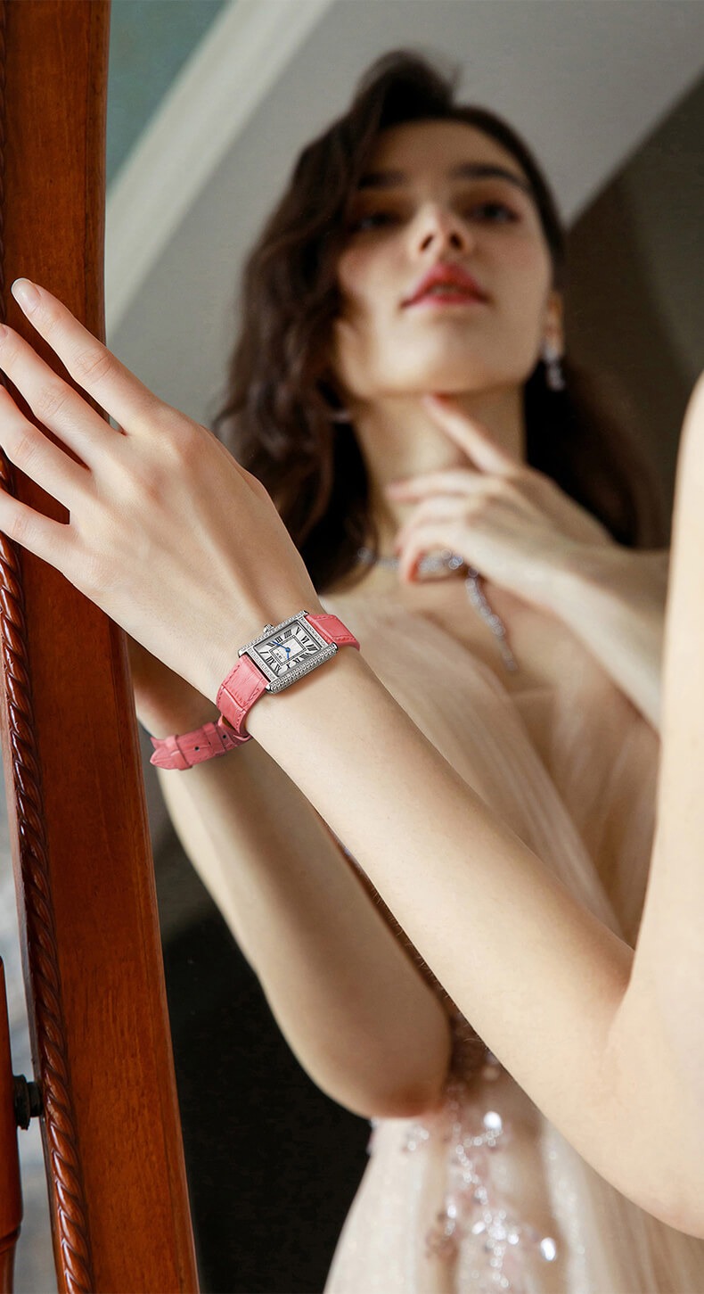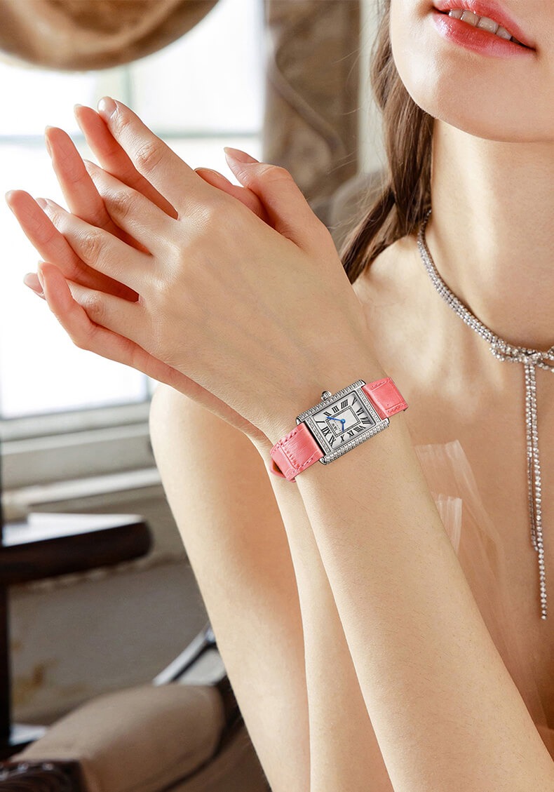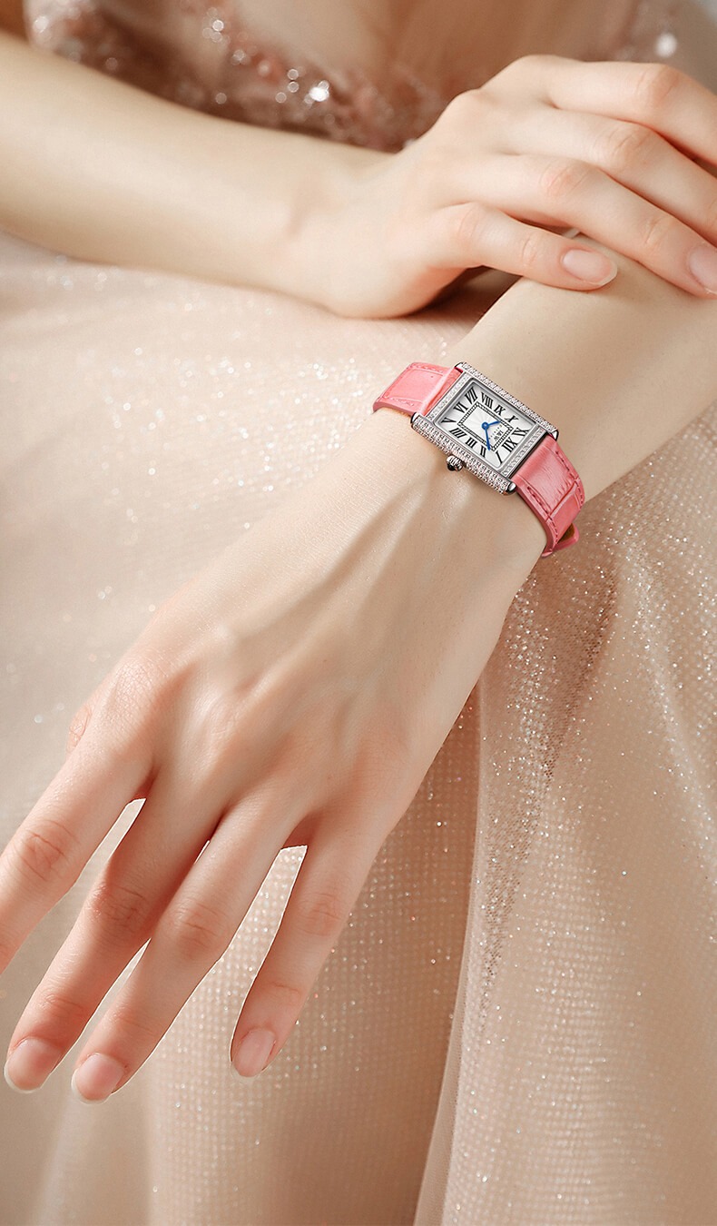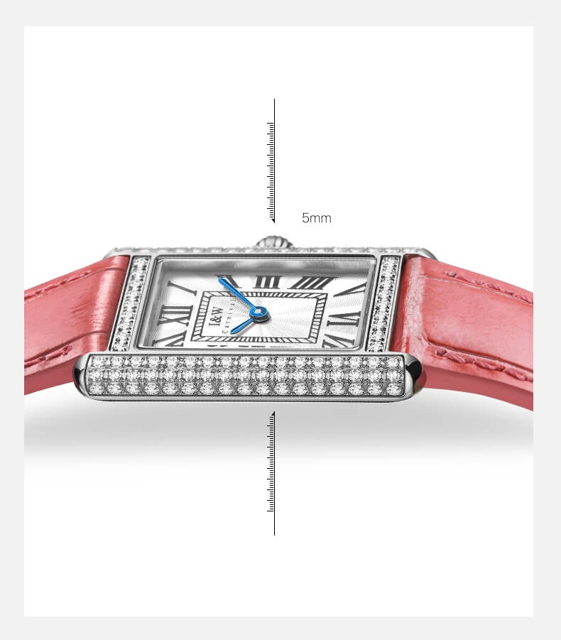 Với những quý cô thanh lịch, IW CARNIVAL IW587L là một lựa chọn hoàn hảo. Mẫu thiết kế sở hữu mặt số dập vân , cọc số La Mã và kim Sword kết hợp cùng lớp vỏ vuông đính đá toàn bộ vỏ ,kích thước 34×22 mm được chế tác tinh xảo để tạo độ cong vừa vặn ôm sát cổ tay .